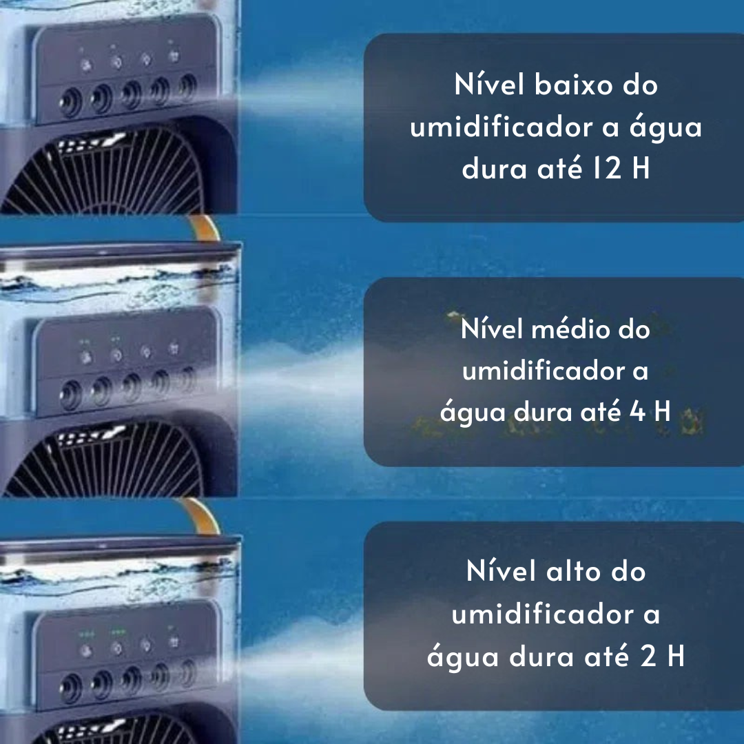 Sua tecnologia avançada de atomização proporciona resfriamento uniforme e imediato, ideal para os dias mais quentes — tudo isso com baixo consumo de energia.Fácil de usar