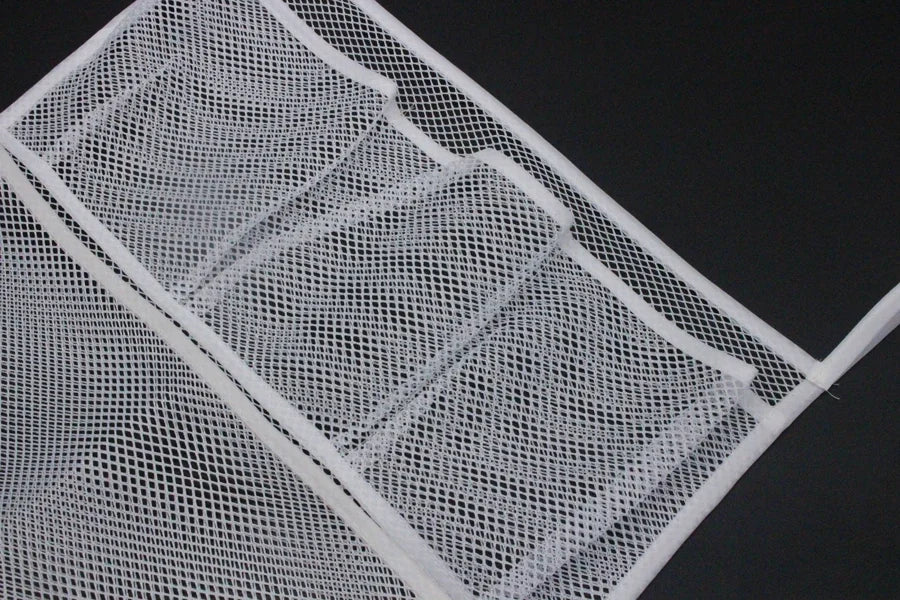 O design de saco com malha proporciona amplo espaço para armazenar brinquedos de banho, proporcionando praticidade ao manter todos os itens ao alcance e secos.