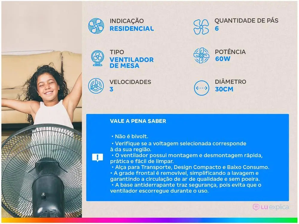 Simples de montar, este ventilador da Mondial é ideal para quem busca praticidade, sem complicação no uso diário.
