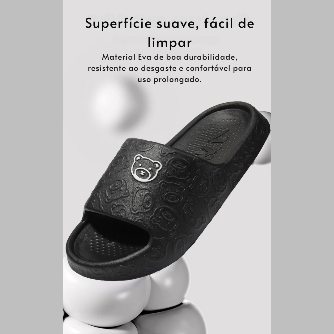 A sola de EVA, com design aprimorado, ajuda a evitar escorregões, garantindo sua segurança ao caminhar em superfícies molhadas, como no banheiro, ou em pisos lisos de casa.