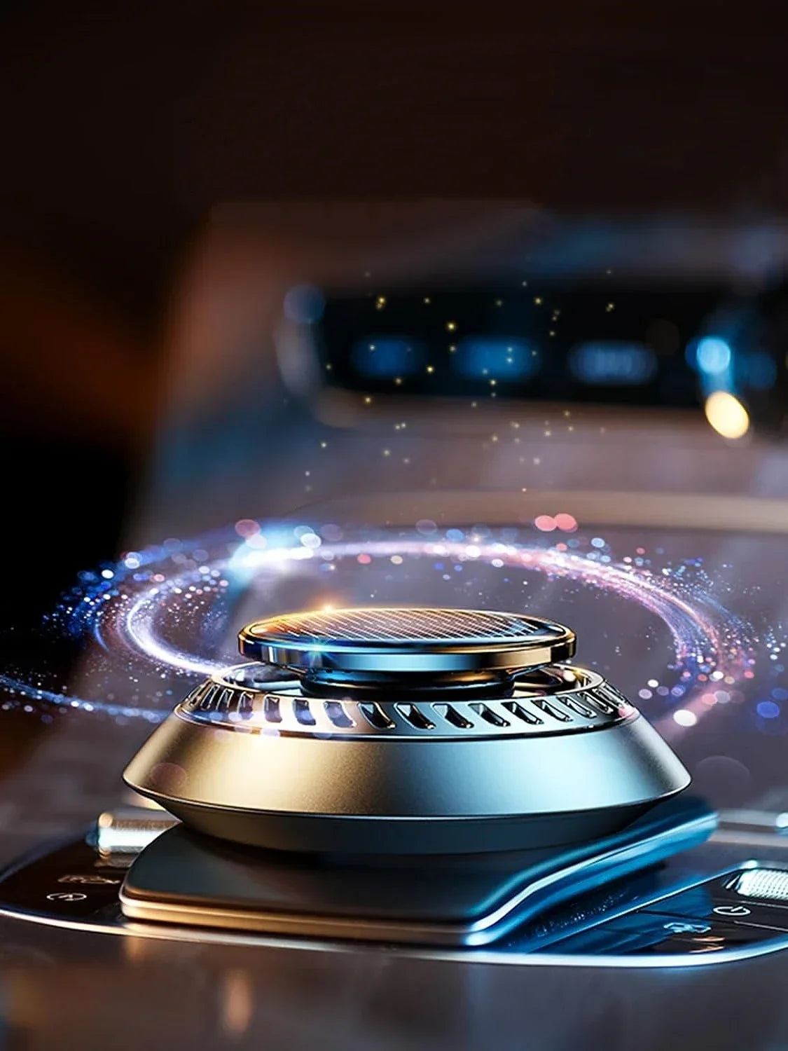 Aromatizador de Carro com Energia Solar – Rotação Automática com Fragrância de Colônia