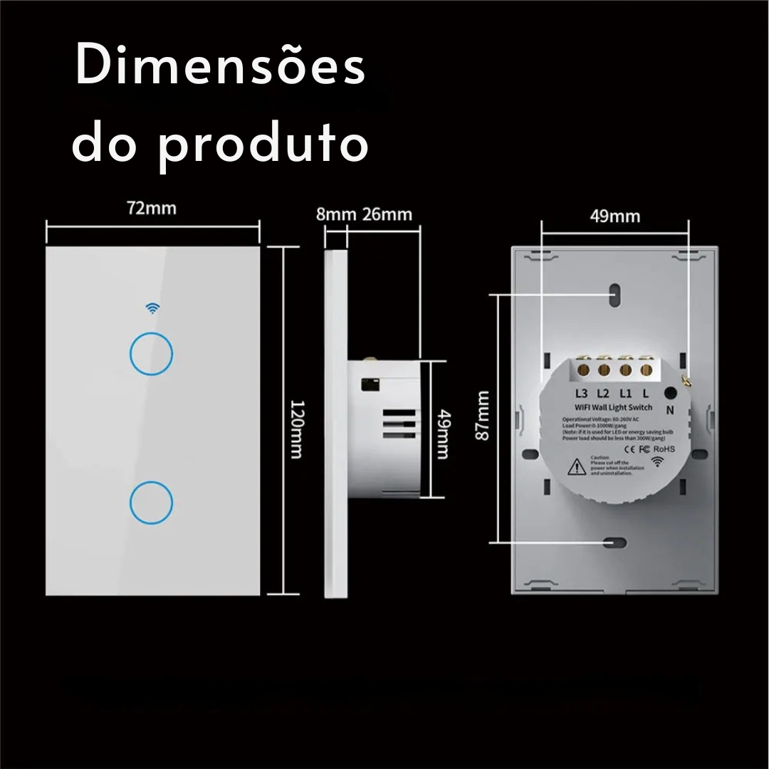 Interruptor de Parede Inteligente Alexa WiFi + RF433 Sem Fio – Controle por Voz, Compatível com Alexa e Google Home