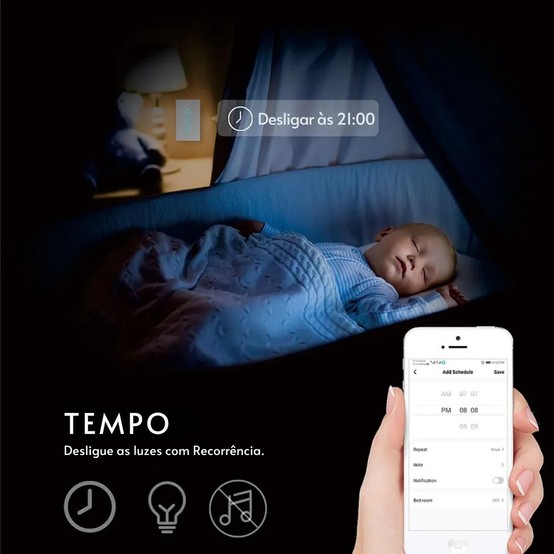 Configure o interruptor para ligar ou desligar automaticamente em horários específicos, como acender as luzes ao anoitecer ou desligá-las ao amanhecer.