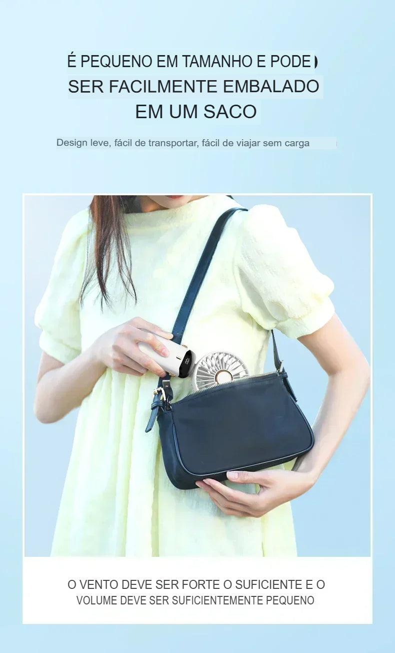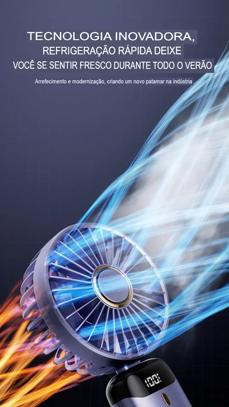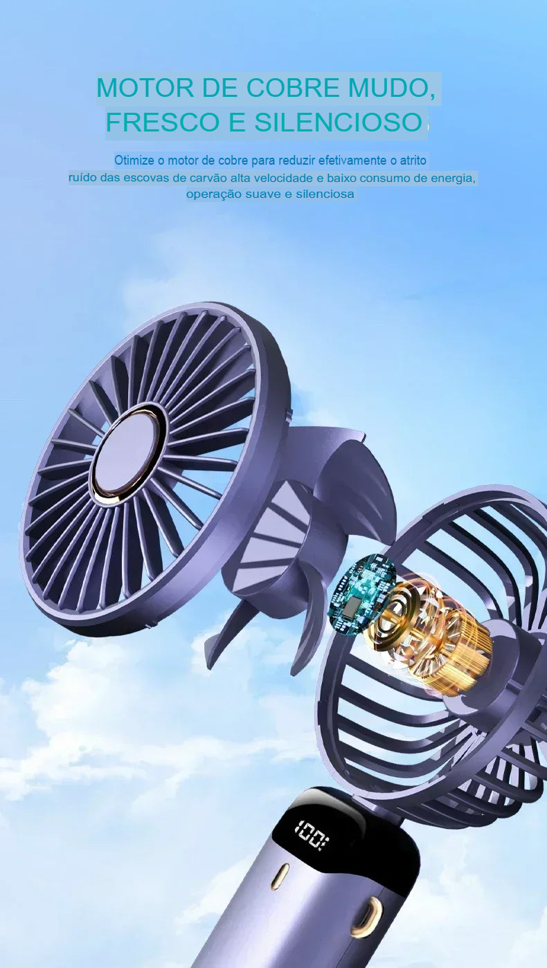 Ventilador Portátil USB Dobrável com Suporte para Celular e Display LED – 5 Velocidades, Recarregável e Multiuso