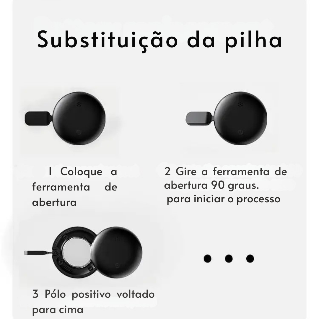 Com bateria de 200mAh, o dispositivo possui longa duração e pode ser substituído com facilidade quando necessário.